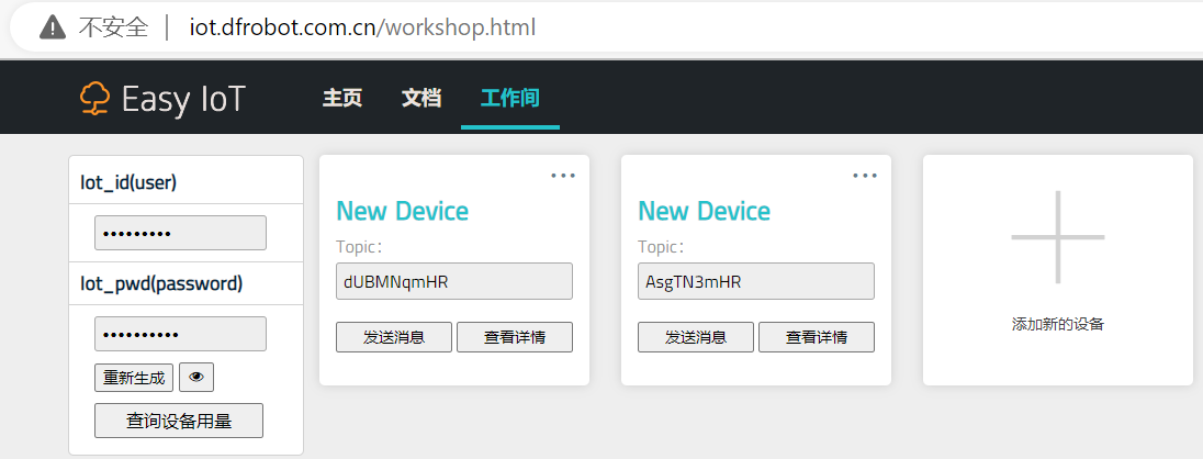 需要在线注册,免费享有1万条消息存储,服务器地址:iot.dfrobot.com.cn,端口1883。