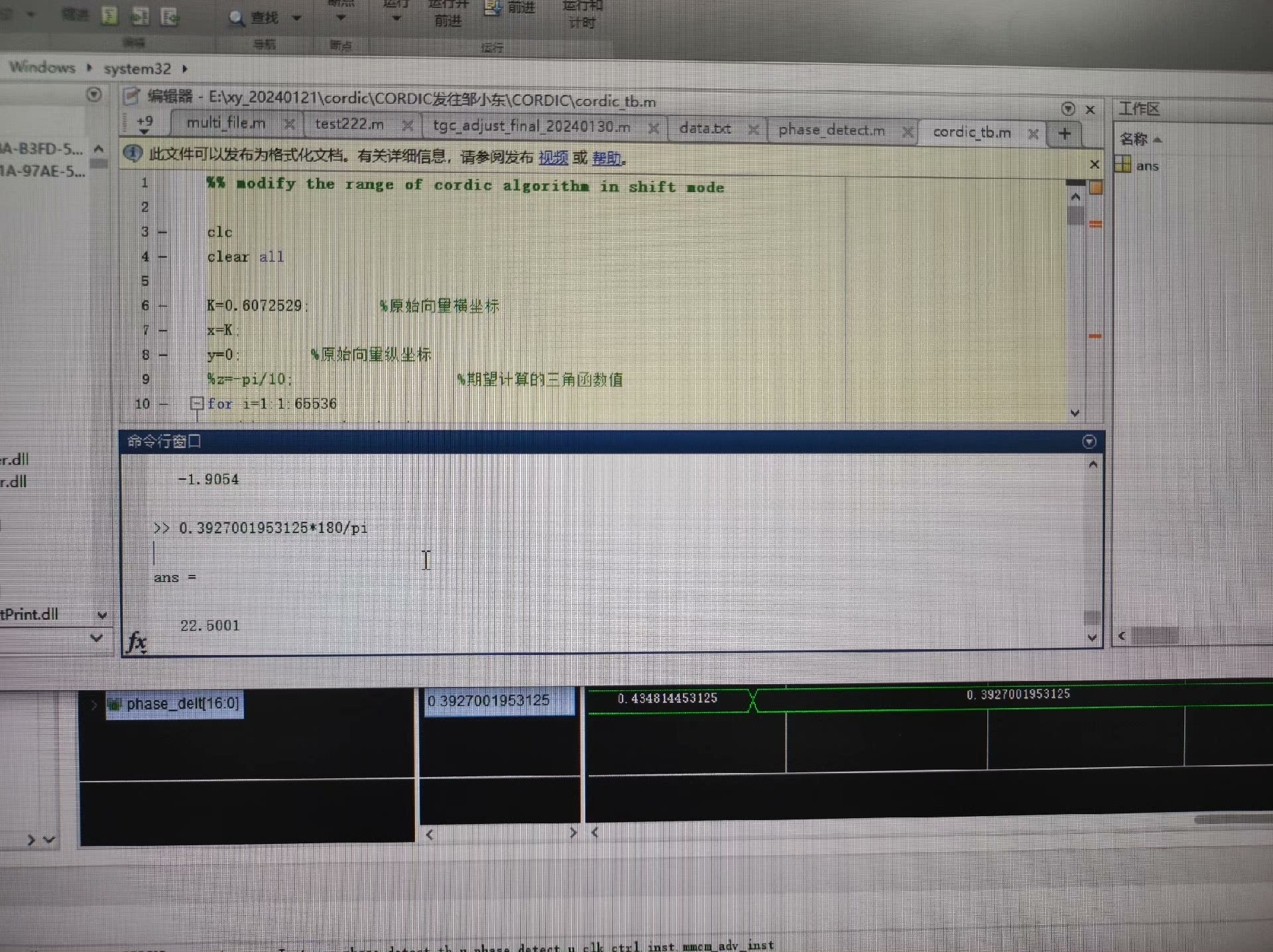 % 假设我们从FPGA仿真中导出了采样数据和相位差数据