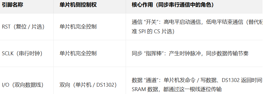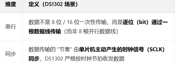 通俗的说,DS1302 和单片机通信时,单片机发一个时钟脉冲,双方就传 1 位数据,时钟是 "指挥棒",数据是 "跟着指挥棒走的音符",无需额外约定传输速率,也不用复杂的帧格式