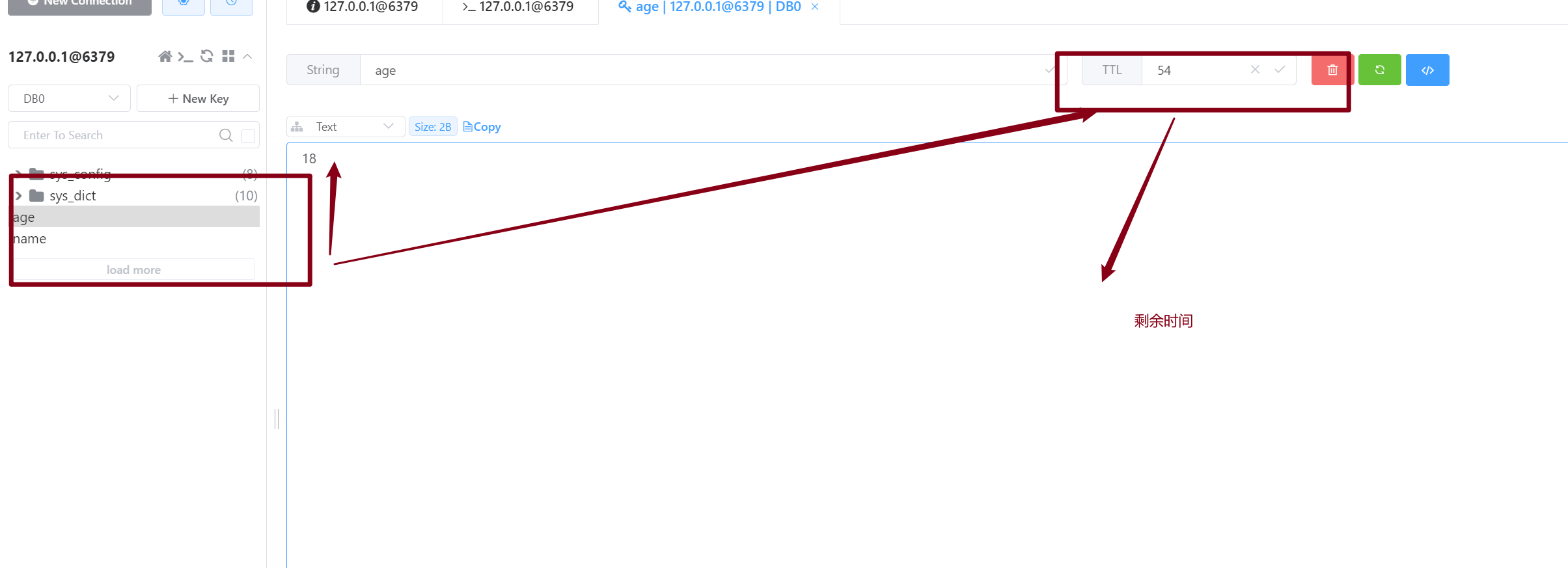 设置年龄键age,值为18,保存时间为60s。