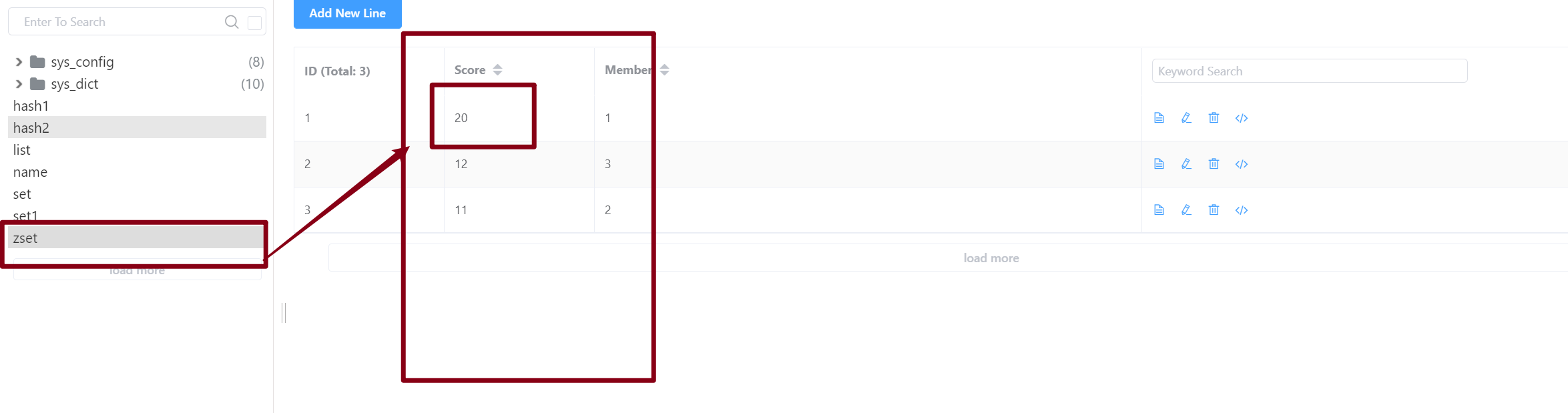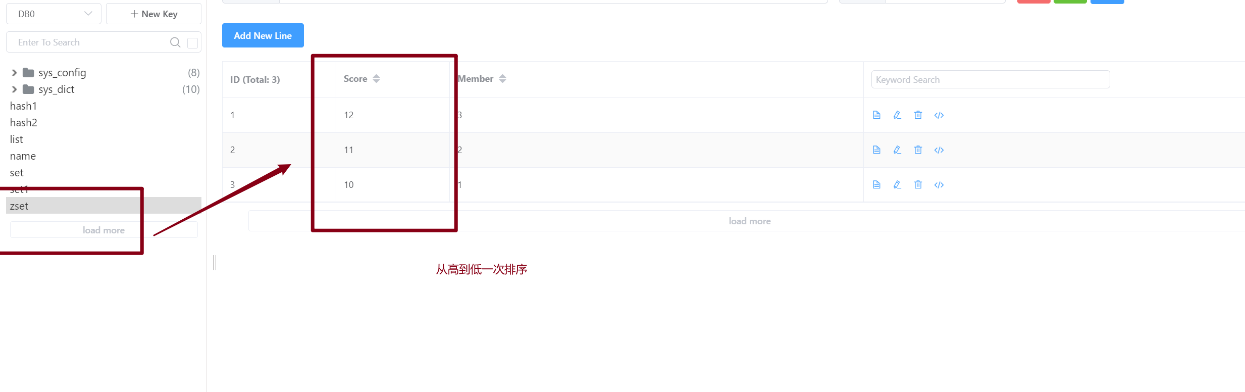 添加值,并且为其添加分数,zset是按照分数从高到低一次排序。
