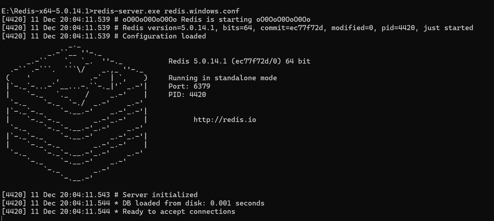 服务启动命令:redis-server.exe redis.windows.conf