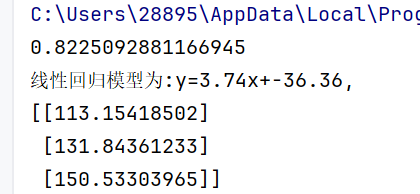 print("线性回归模型为:y = {}x + {}.".format(b, a))