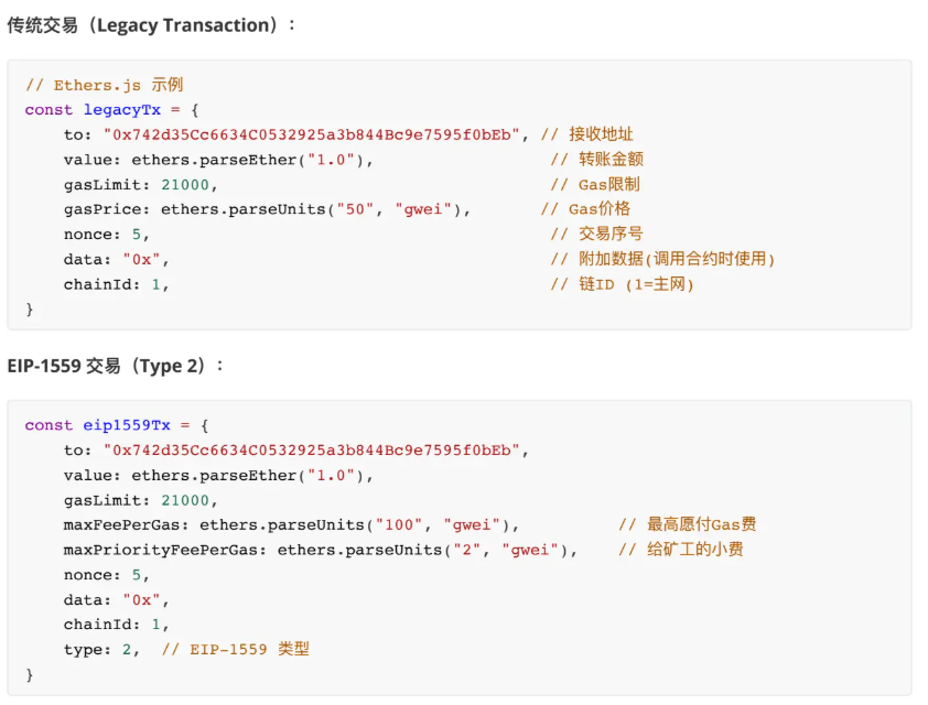 以太坊有两种交易类型(EIP-1559后):