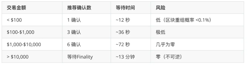 - 安全确认:~70 秒(3 确认)
