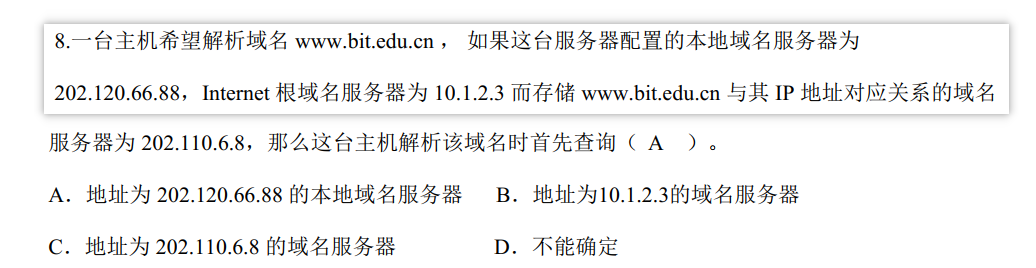所以,这道题的答案就是那个"小秘书"的名字:A. 地址为 202.120.66.68 的本地域名服务器。