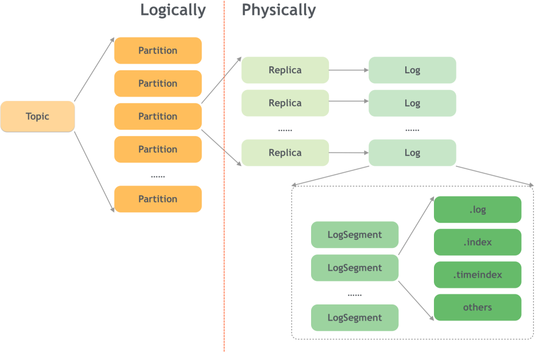 - 每个主题可以分成多个分区,每个分区在物理上对应一个文件夹。