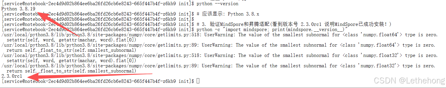 # 预期输出:Python 3.8.x(与镜像版本一致)