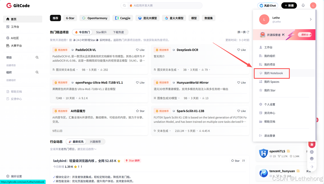 访问 GitCode 官网 (https://gitcode.com/),进入 Notebook 页面开始