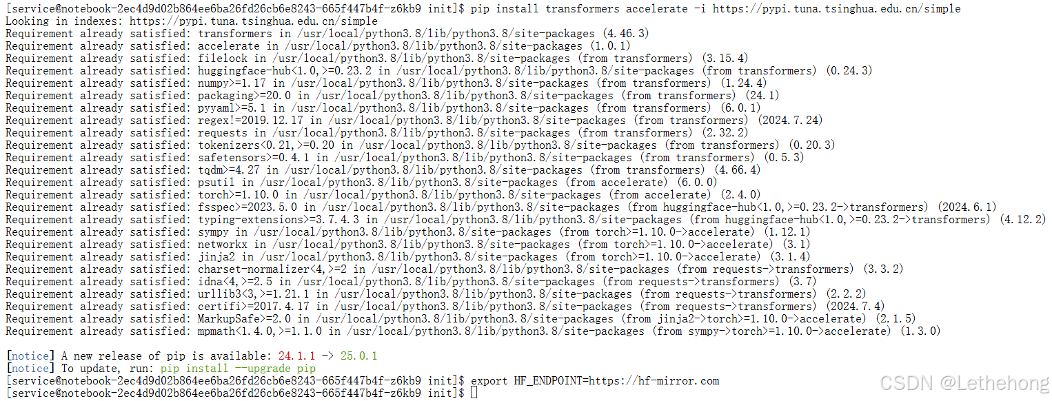 pip install transformers accelerate -i https://pypi.tuna.tsinghua.edu.cn/simple