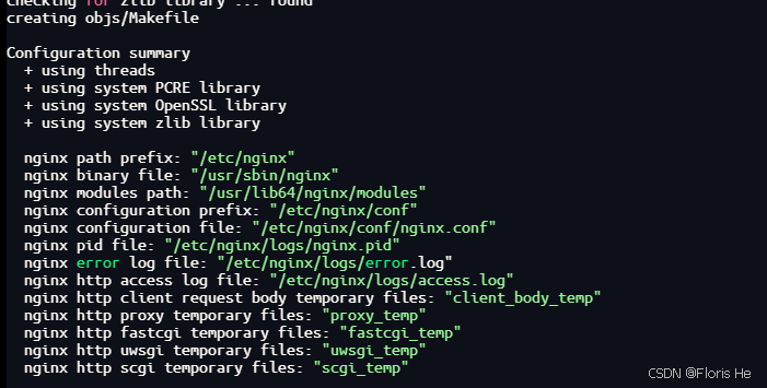 如果 nginx 的 configure 脚本没有明确禁止使用某个依赖项(如没有使用 --without-pcre),那么对于那些被视为核心或基础功能的依赖项,它默认会尝试在系统的标准路径下(如 /usr/lib, /usr/include 等)自动查找可用的库文件和头文件。所以上述的选项没有必要可不指定。
