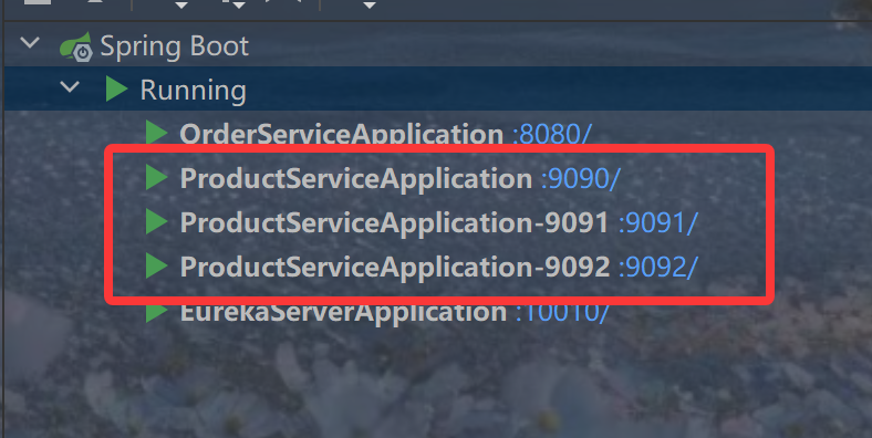 观察 Eureka,可以看到 product-service 中有三个实例: