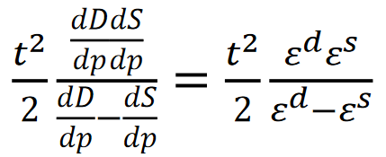 关于无谓损失的大小有一个计算公式如下,其传达的核心信息:无谓损失和税率的平方成正比。因此高税率对经济效率的损害非常大。