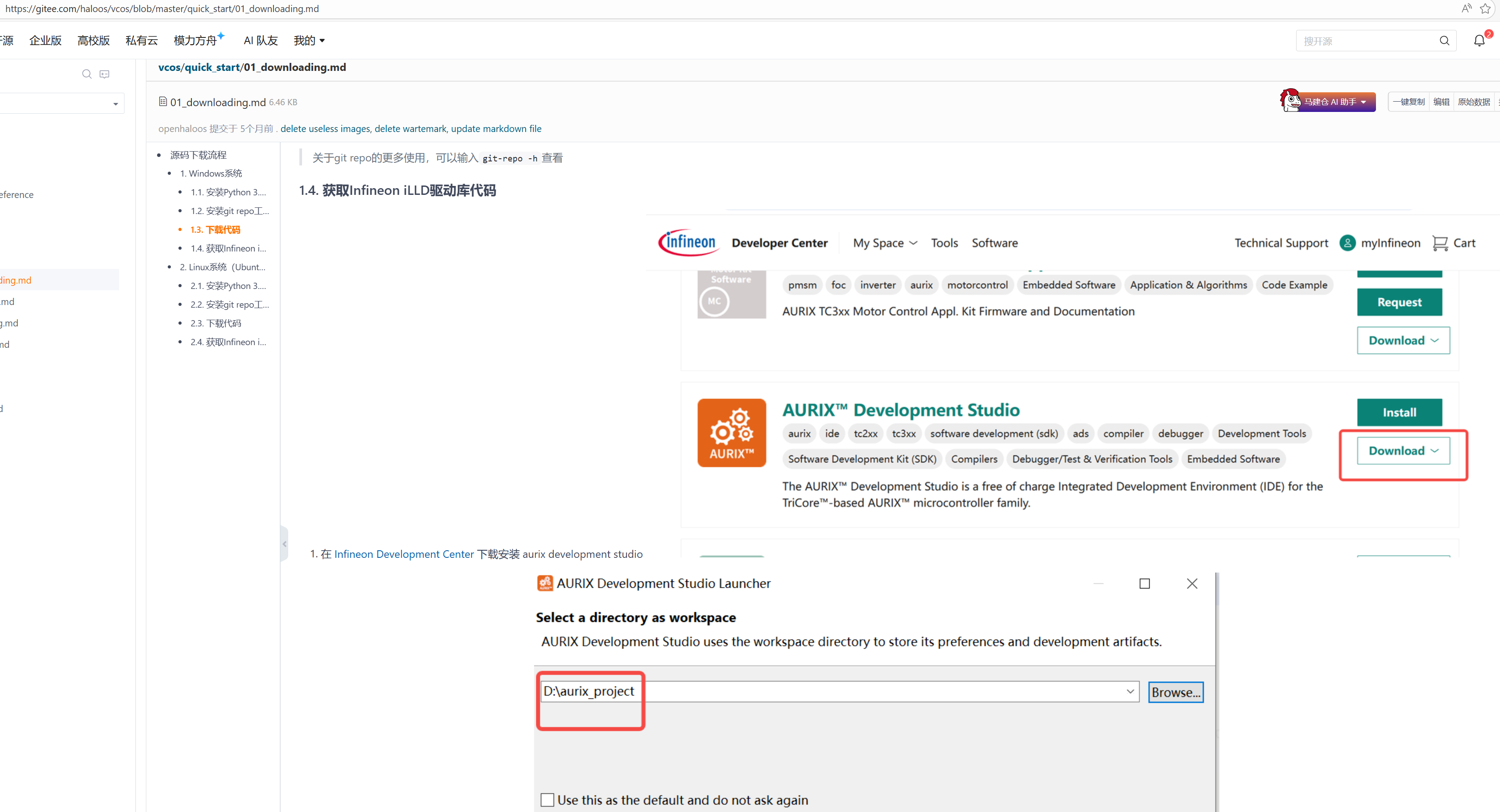 刚好又在gitee上开源了,所以花了一下午时间部署了一下环境,虽然官网文档已经写得很详细了,但是有些内容也比较分散或者已经过期没有更新(比如TC397 illd库的安装部分),所以我简单记录下我自己的部署过程。