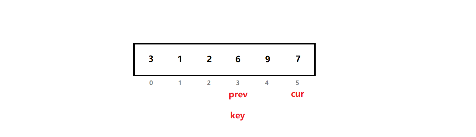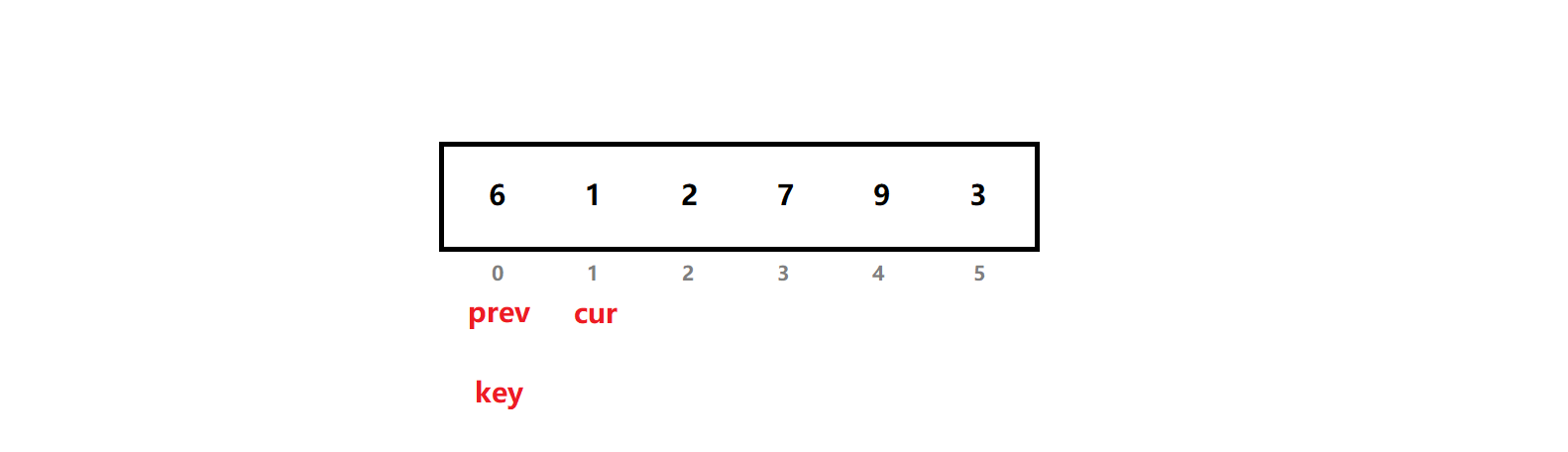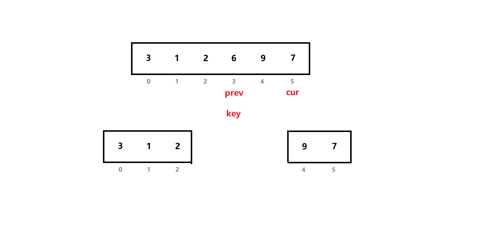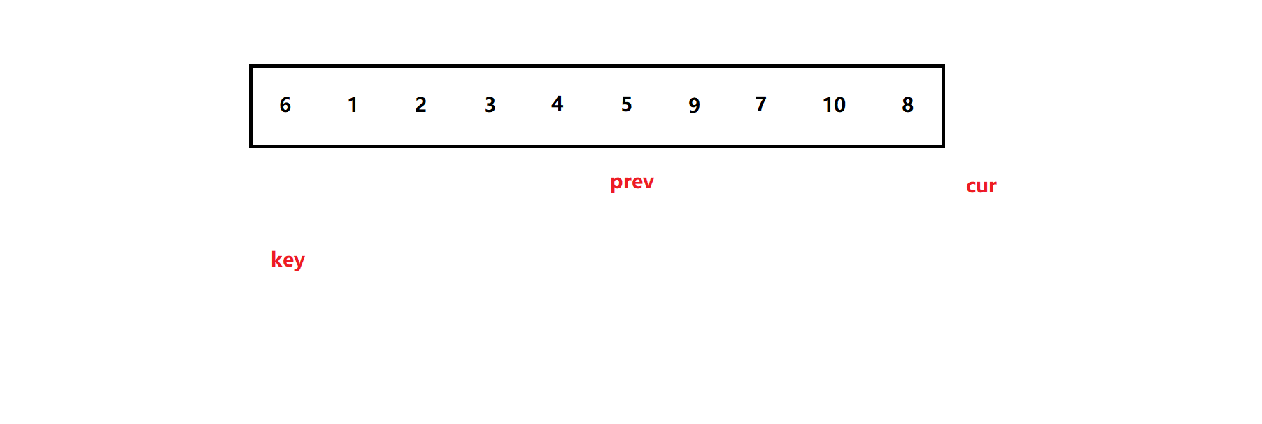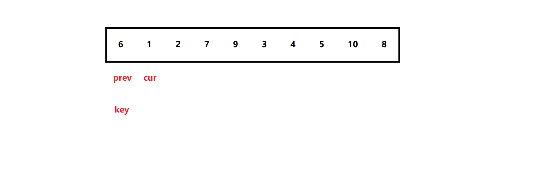 定义基准值下标key ,接着定义下标prev 、cur ,位置如图所示: