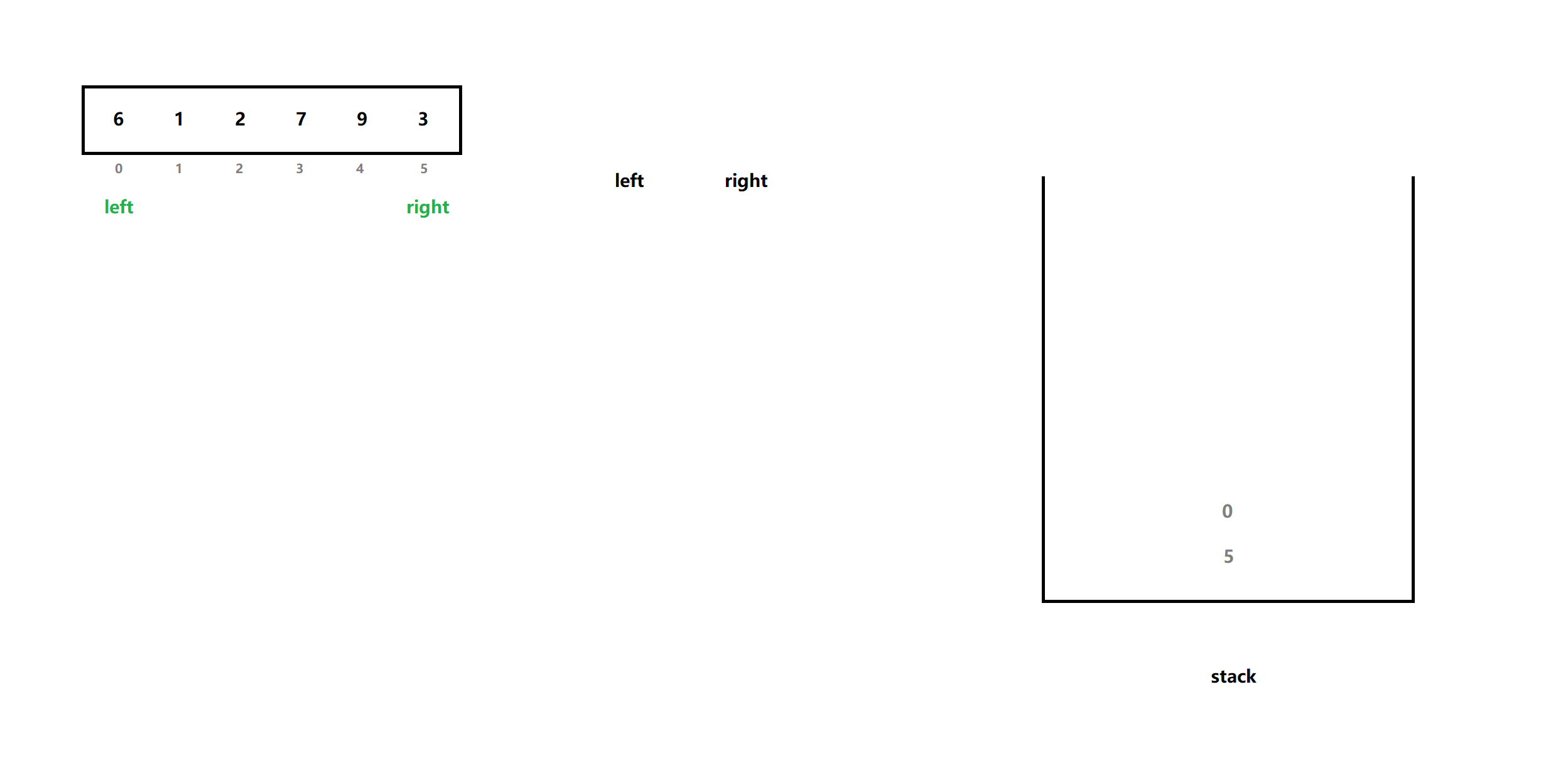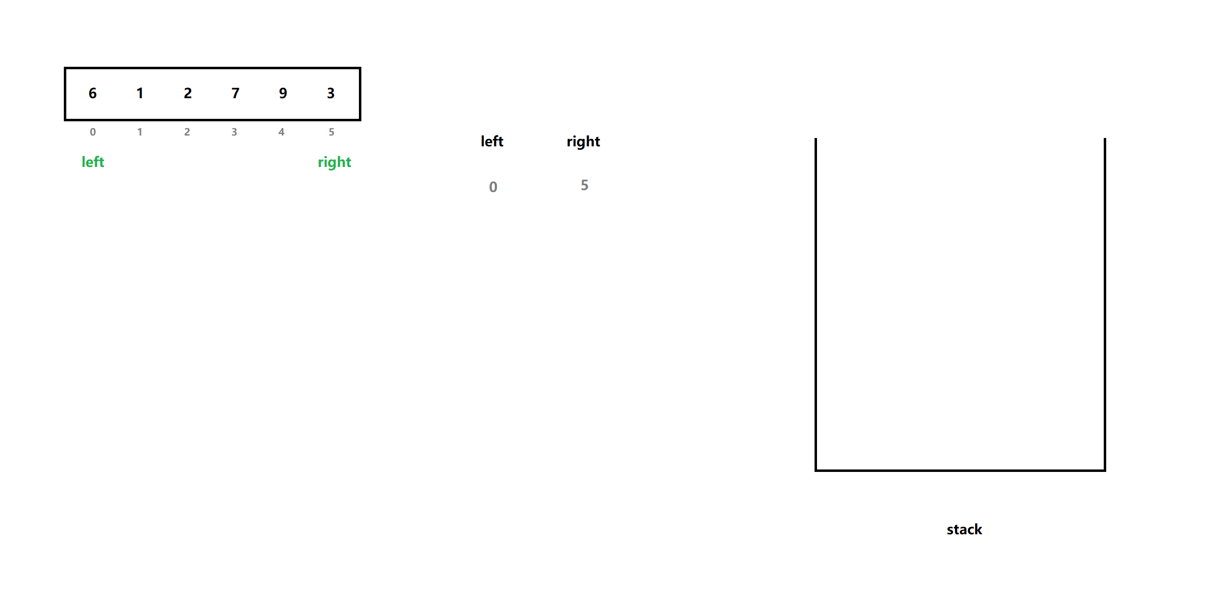 首先,我们将序列的左、右端下标入栈 ,使得栈不为空 :