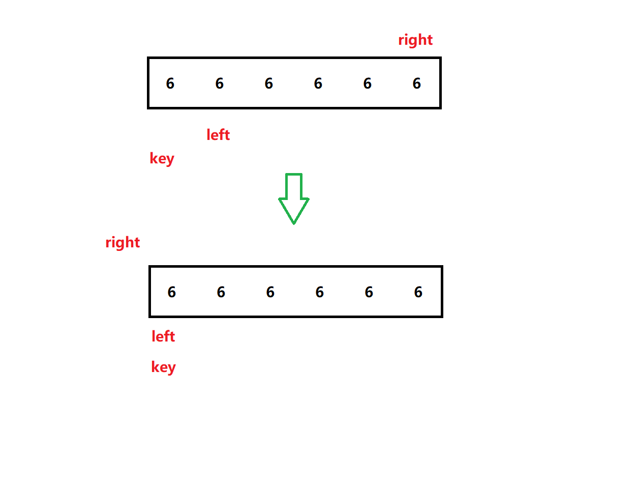 如果我们加上**=,当待排序列中有许多 与基准数相等**的数,甚至所有数都与基准数相等时,对于这篇文章的代码,当走到right的调整循环中时,循环会不停执行,直到right越界: