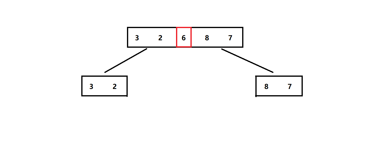 接着用这两端,进行找基准值 操作,得到基准值下标key ,此时分出左、右序列:
