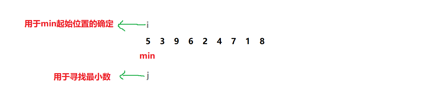 我们定义变量min。一开始所有数据都需要排序,所以min在数组首位 ;然后循环,使min定位 序列的最小数据;找到后,循环结束,进行交换 操作使最小数到序列最前方。