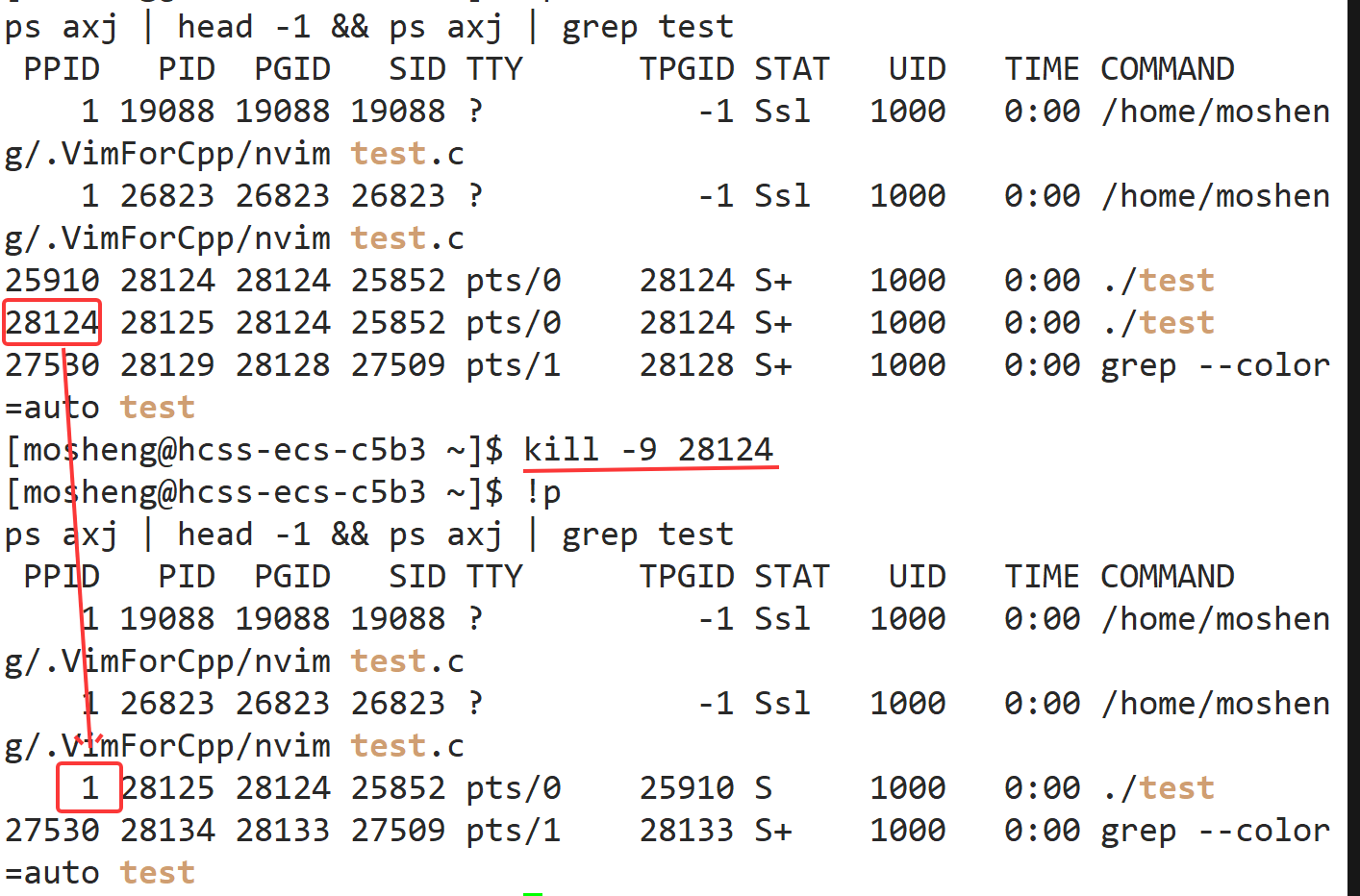 11 printf("我是子进程,PID:%d, PPID: %d\n", getpid(), getppid ());