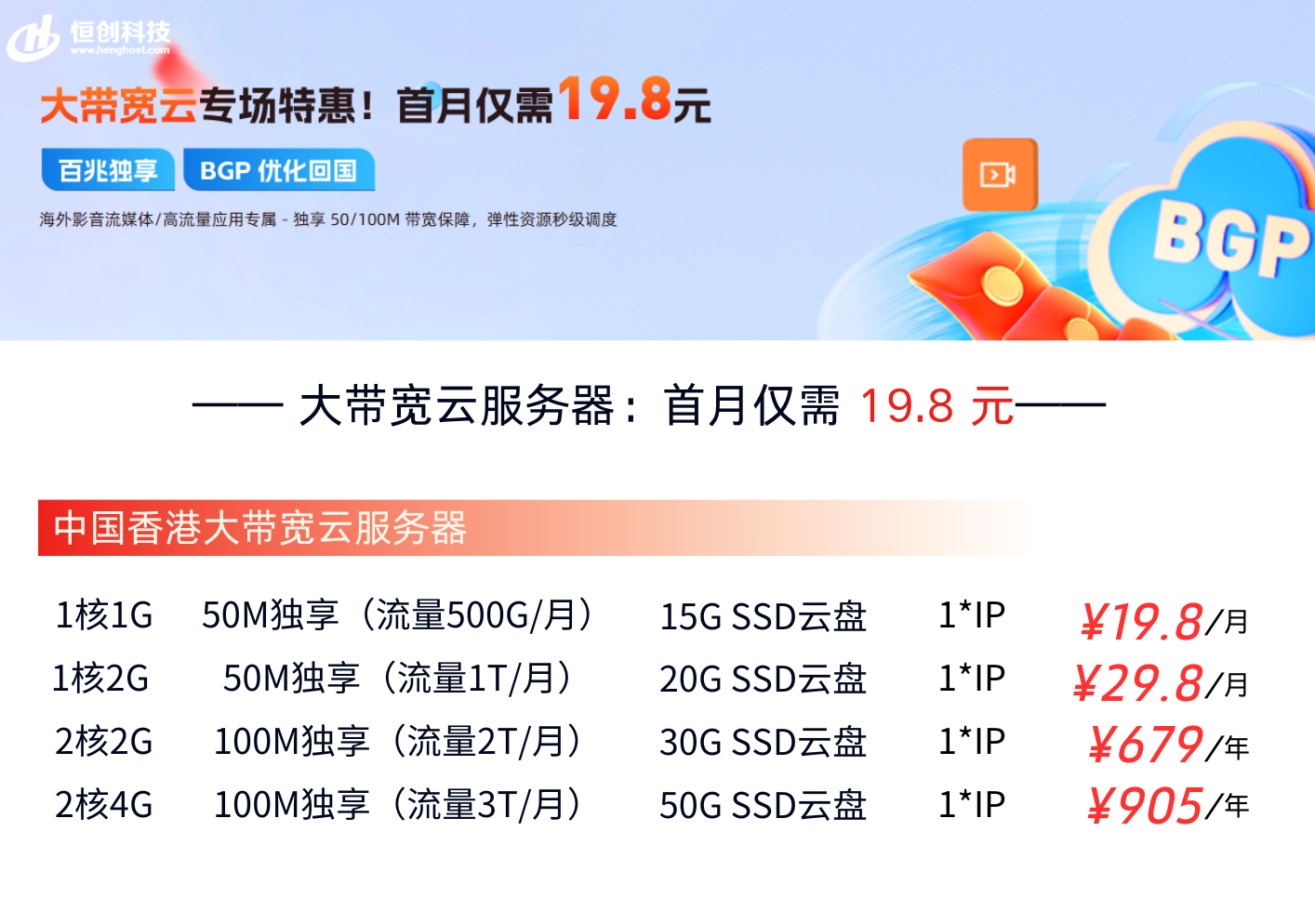 香港云服务器凭借其地理位置优越、网络延迟低、免备案等优势,成为企业出海和全球业务部署的首选。尤其在需要大带宽支持的场景下,如视频直播、在线教育、游戏或高流量网站,选择合适的配置和价格方案至关重要。本文将详细介绍香港云大宽带服务器的常见配置及价格参考,帮助您做出明智决策。