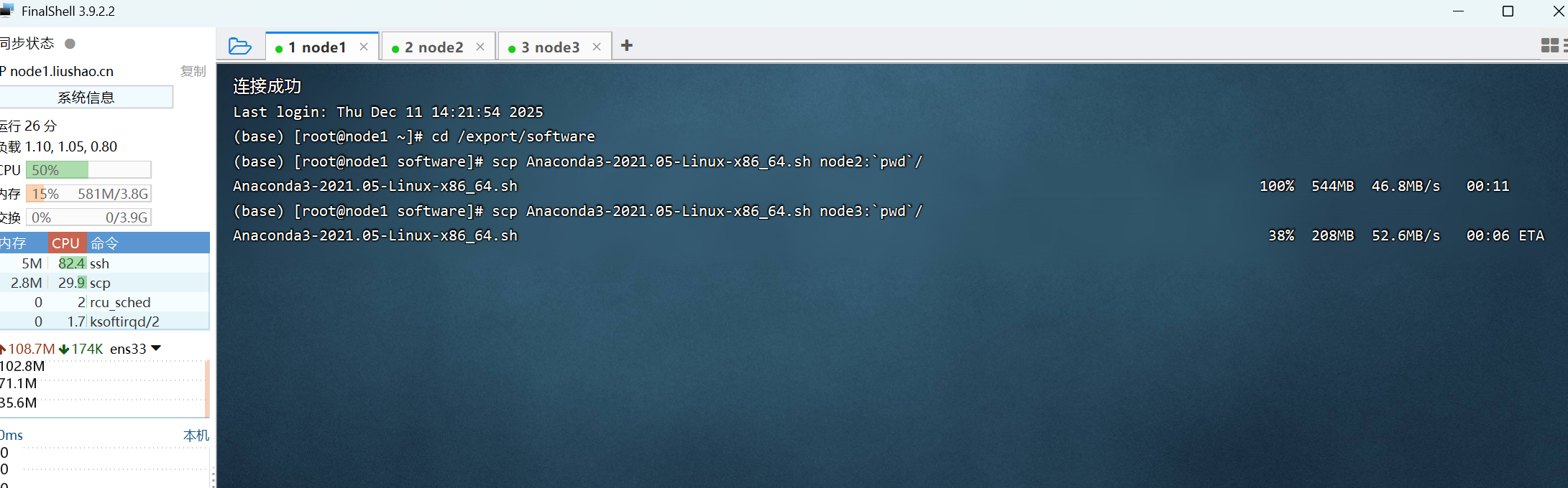 scp Anaconda3-2021.05-Linux-x86_64.sh node3:`pwd`/