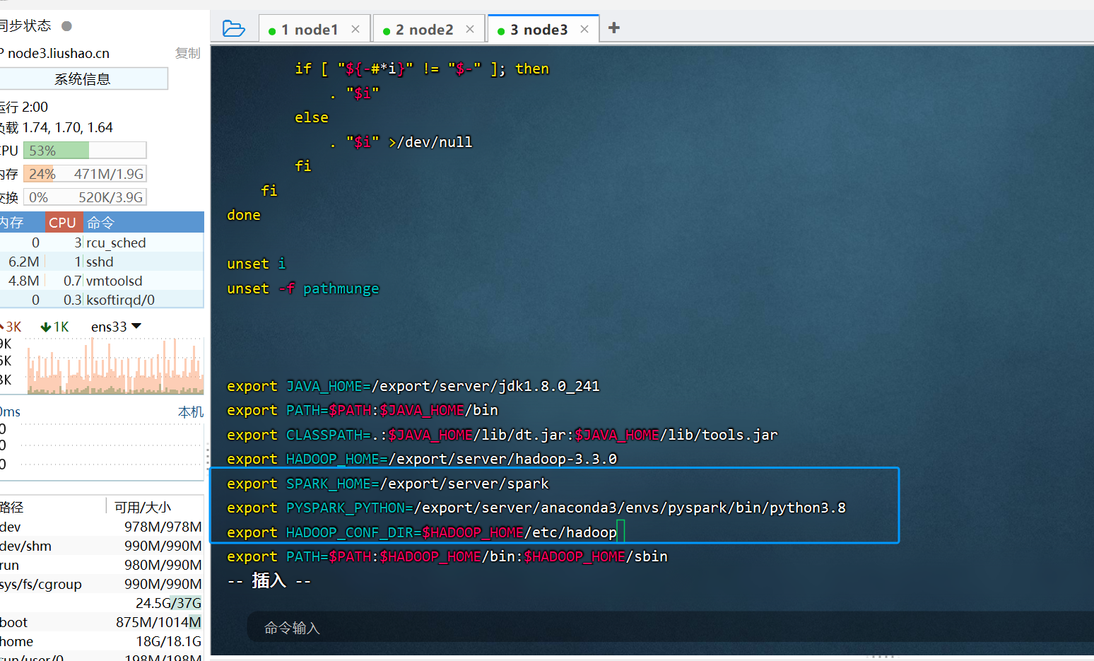 (pyspark) [root@node2 ~]# vim /etc/profile