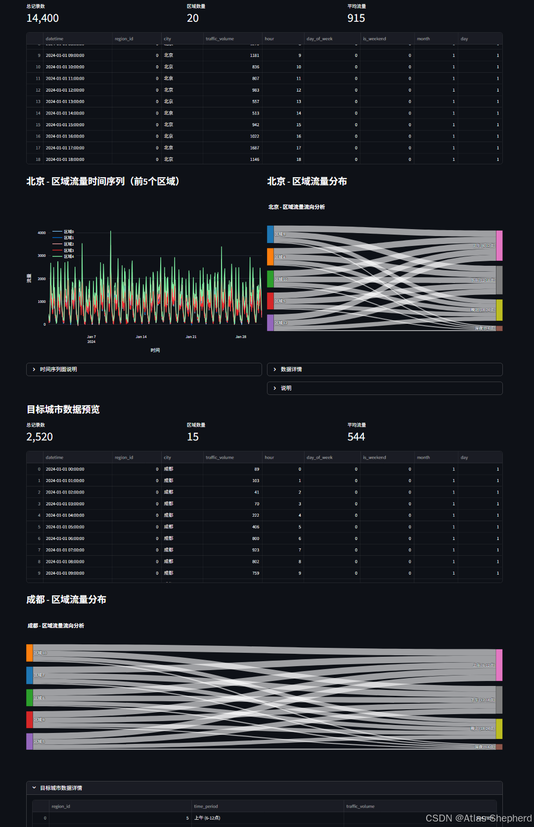 使用python基于Streamlit构建的跨城市人类移动行为预测系统,利用迁移学习技术将源城市的丰富数据知识迁移到目标城市进行流量预测。