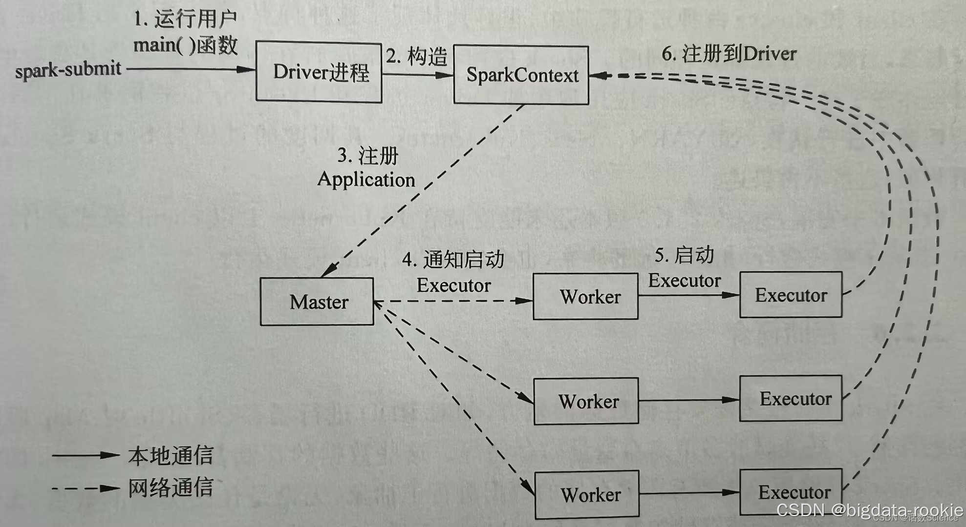 启动 Executor:ClusterManager 在 Worker 节点上启动 Executor 进程;