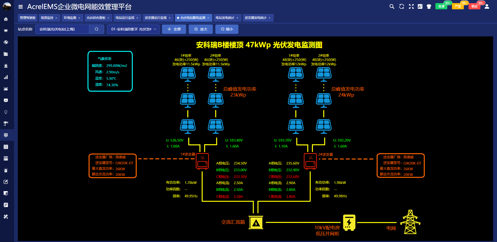 实时显示光伏电站一次接线图,光伏组串直流/交流侧实时数据