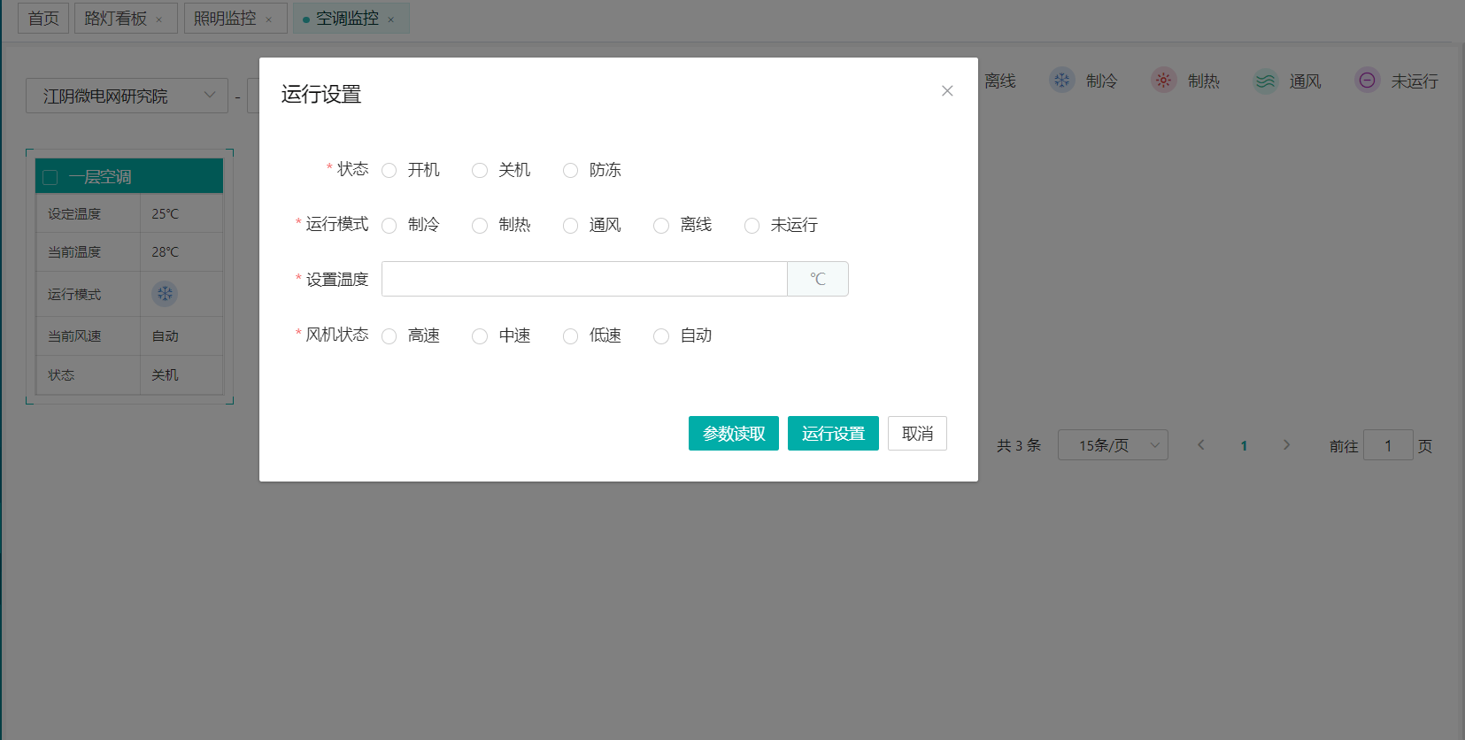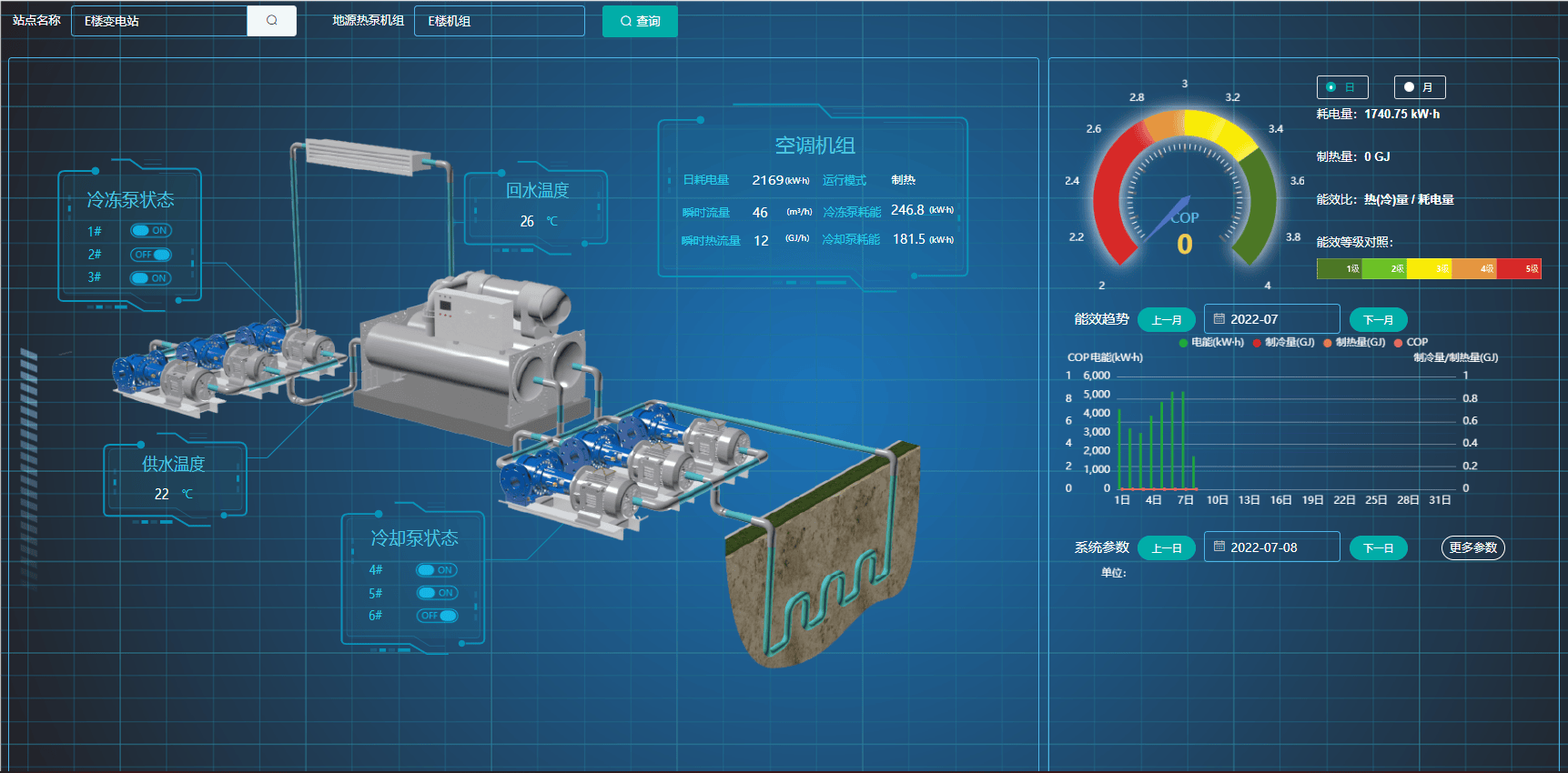 监测中央空调的用能数据、运行状态及用能数据分析。