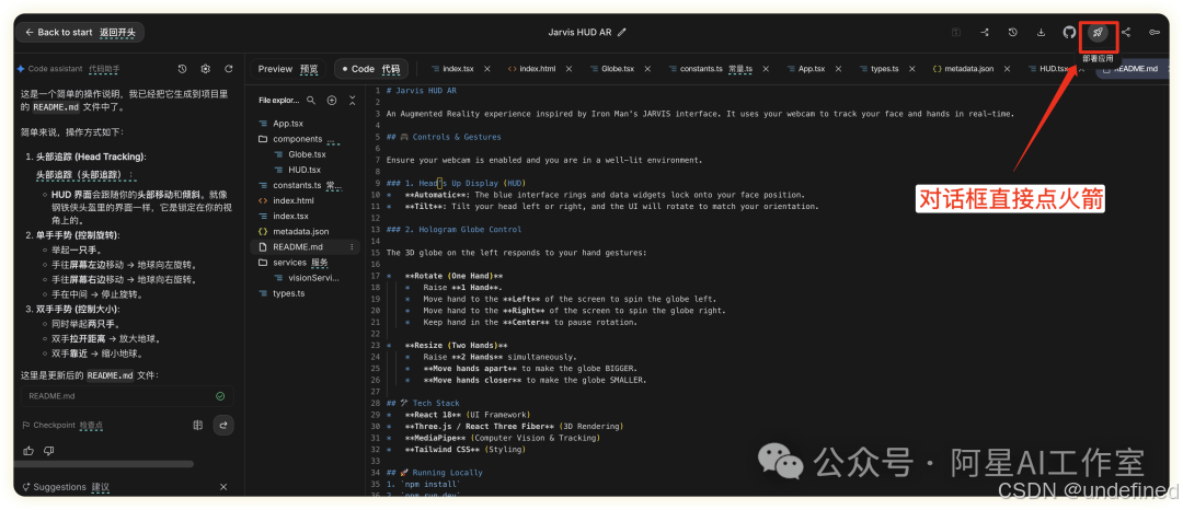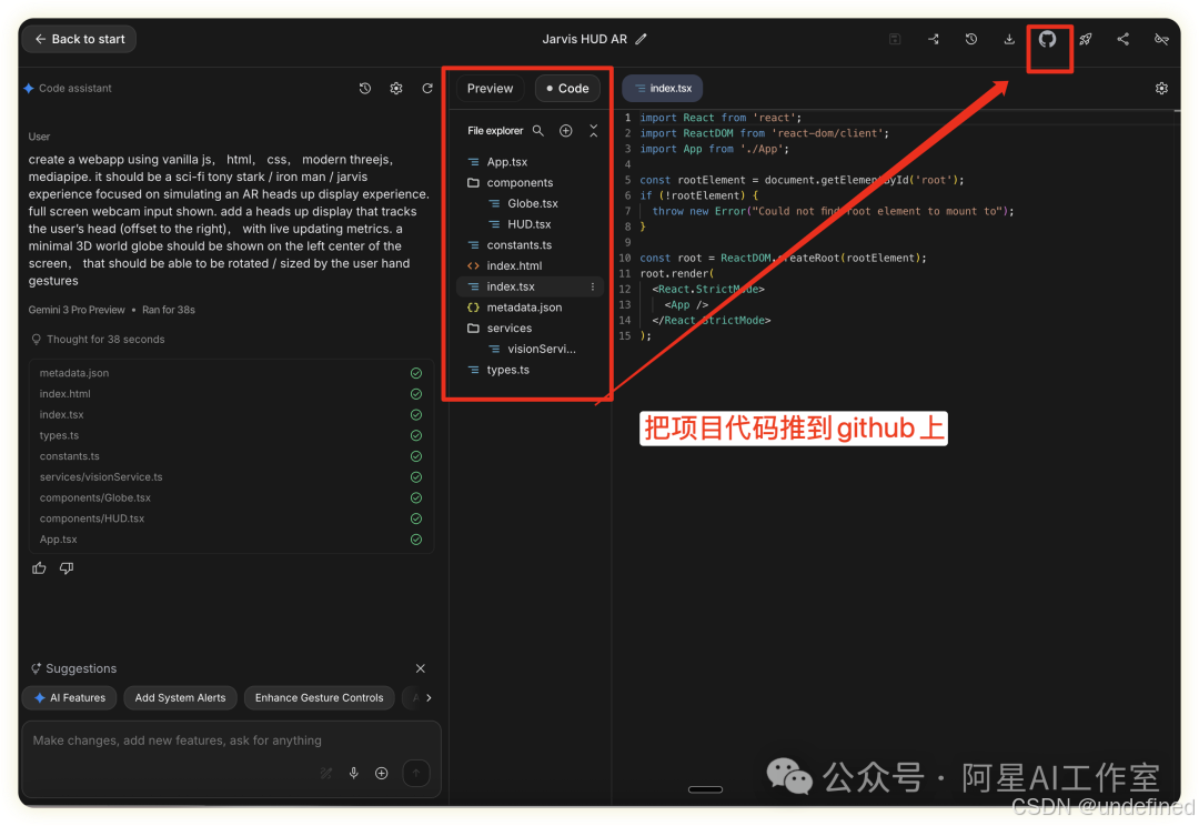 写完代码之后在你的 Google AI Studio 项目中点右上角(不知道怎么用gemini3的复习一下我之前写的:👉++Gemini3做小红书封面生成器,效率暴增1000% ,实现爆款封面自由!++)
