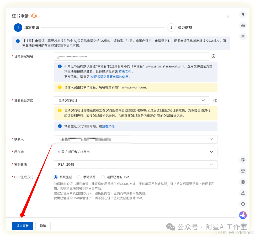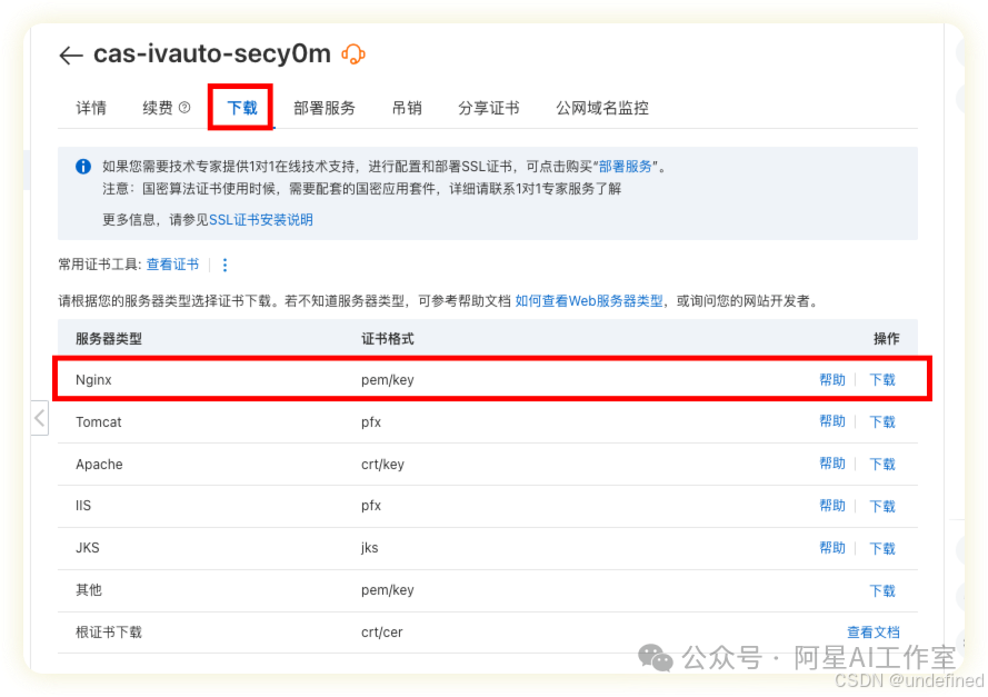 证书获取方式:SSL控制台