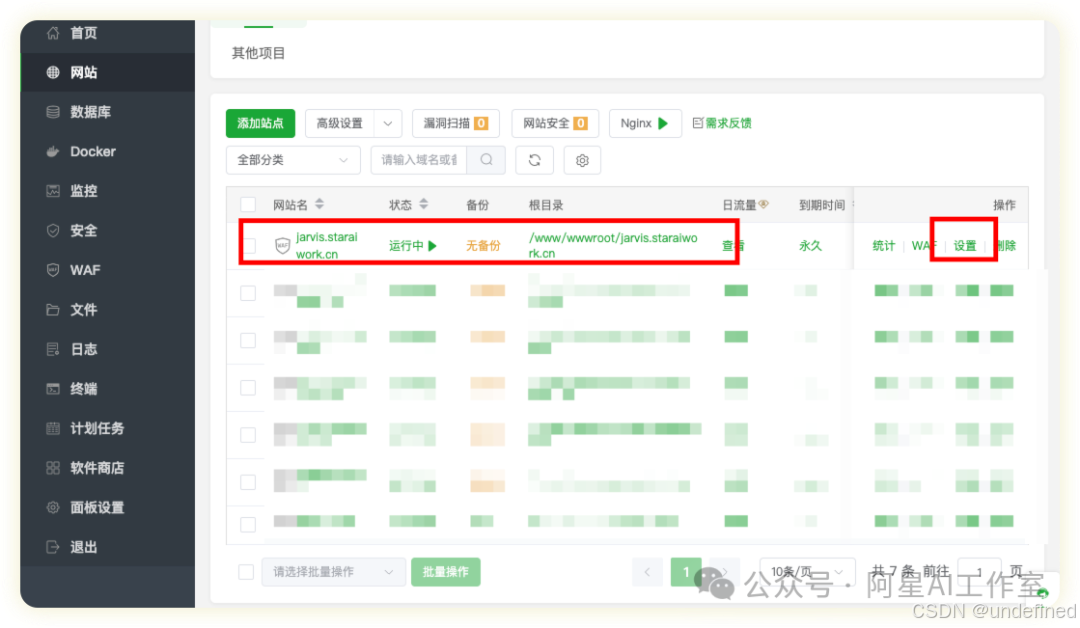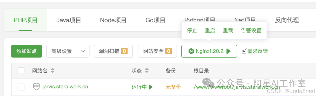 回到宝塔的"网站"列表,找到你的站点,点击右侧的"重启"按钮。