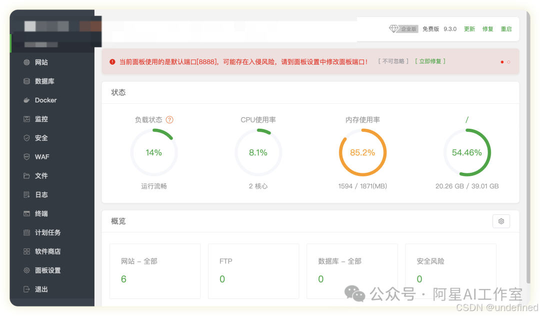 如果说服务器是转头和实体房子,宝塔面板就是ipad上看到的这个房子的投影,能让你对这个房子看得更清楚。我们直接操作服务器太不可视化了,所以宝塔面板这种工具能让我通过点来点去,去操作服务器。