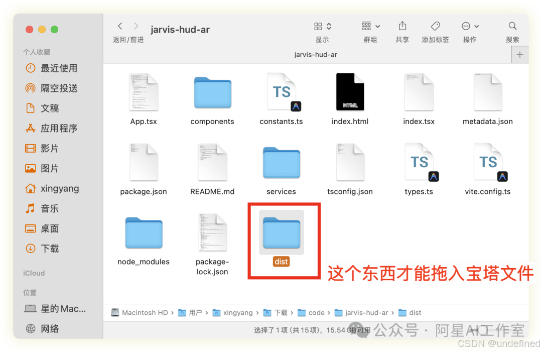 把 dist 文件夹里面的内容 (通常是 index.html 和 assets 文件夹)拖到宝塔的网站根目录,这才是浏览器能看懂的网站文件。