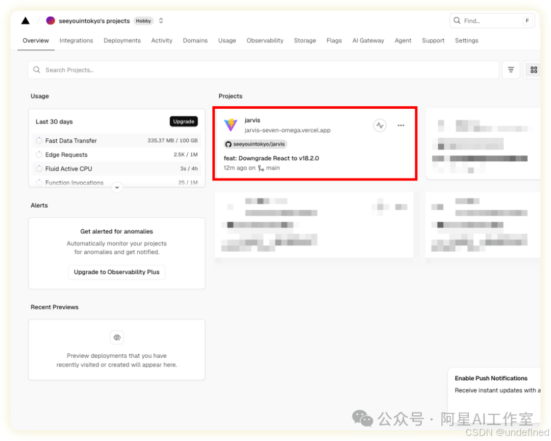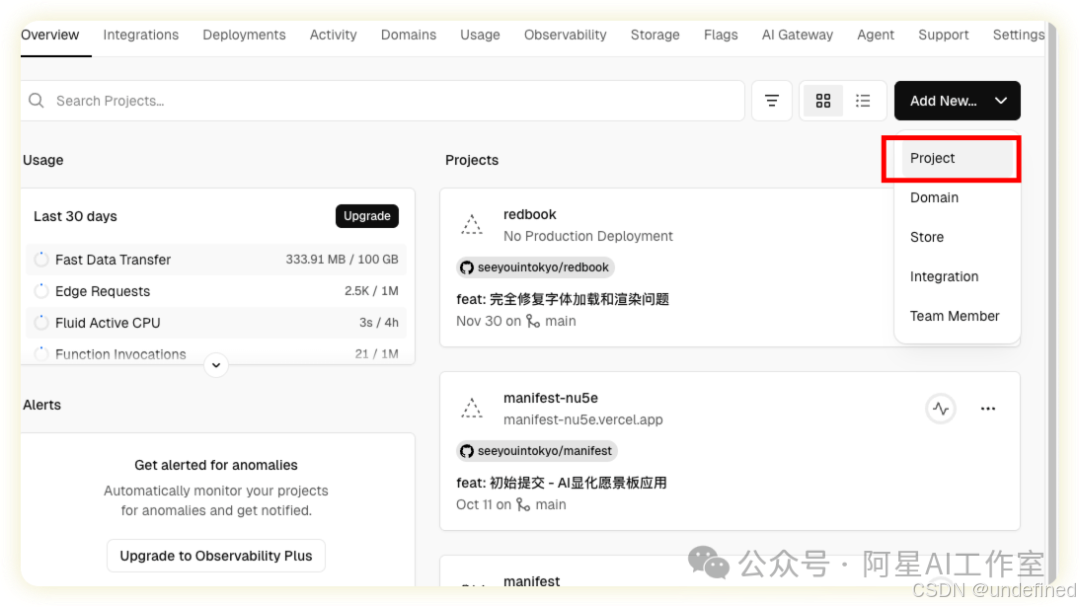 2、在vercel一键部署,不红没成本