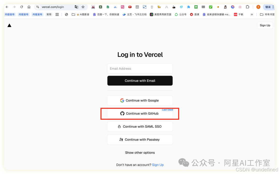 访问 Vercel 官网,使用你的 GitHub 账号登录。(因为我们要接入github的项目更方便)授权后,Vercel 就能看到你的仓库了。