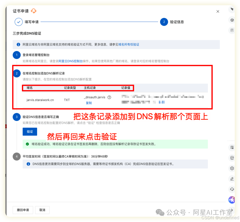 填上你刚才申请ssl证书的时候让你添加的记录。