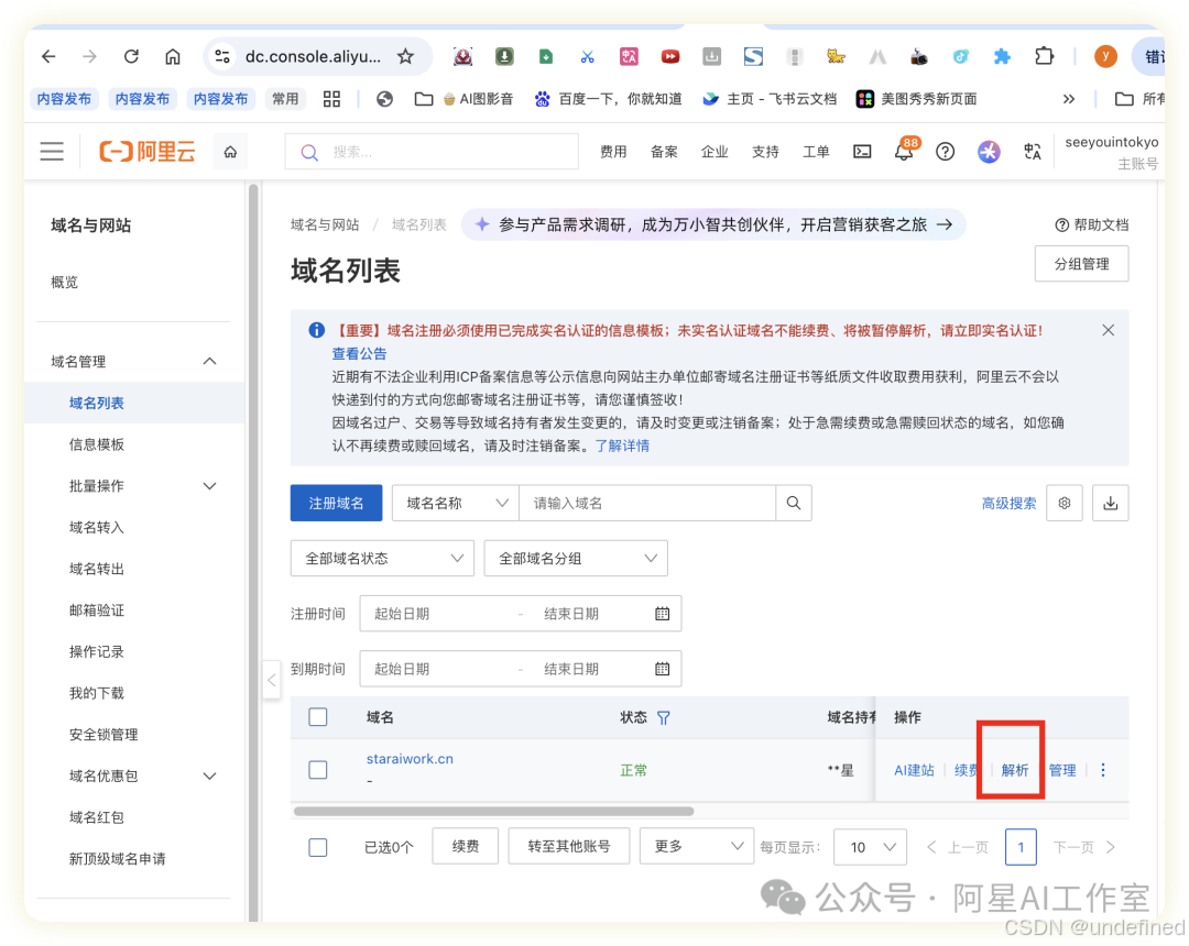 特别提醒:aliyun这块对于没做过的同学会有点想shi,感觉不是在学ai,是在学ailiyun使用方法,不过坚持下来,只需要一次之后直到流程就可以部署无数个网站。