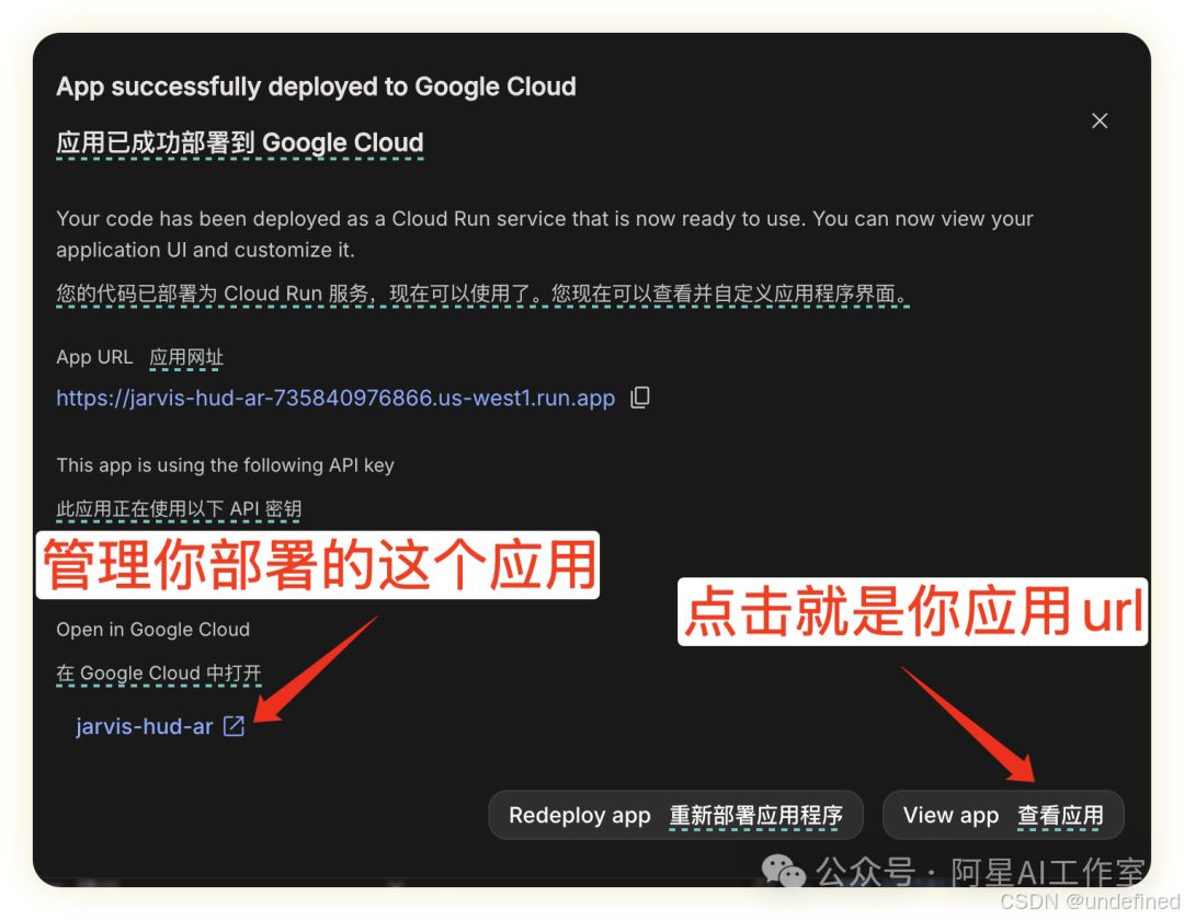 部署成功后会有这3个应用,直接点击view app就弹出来的那个网站,就是你的应用url