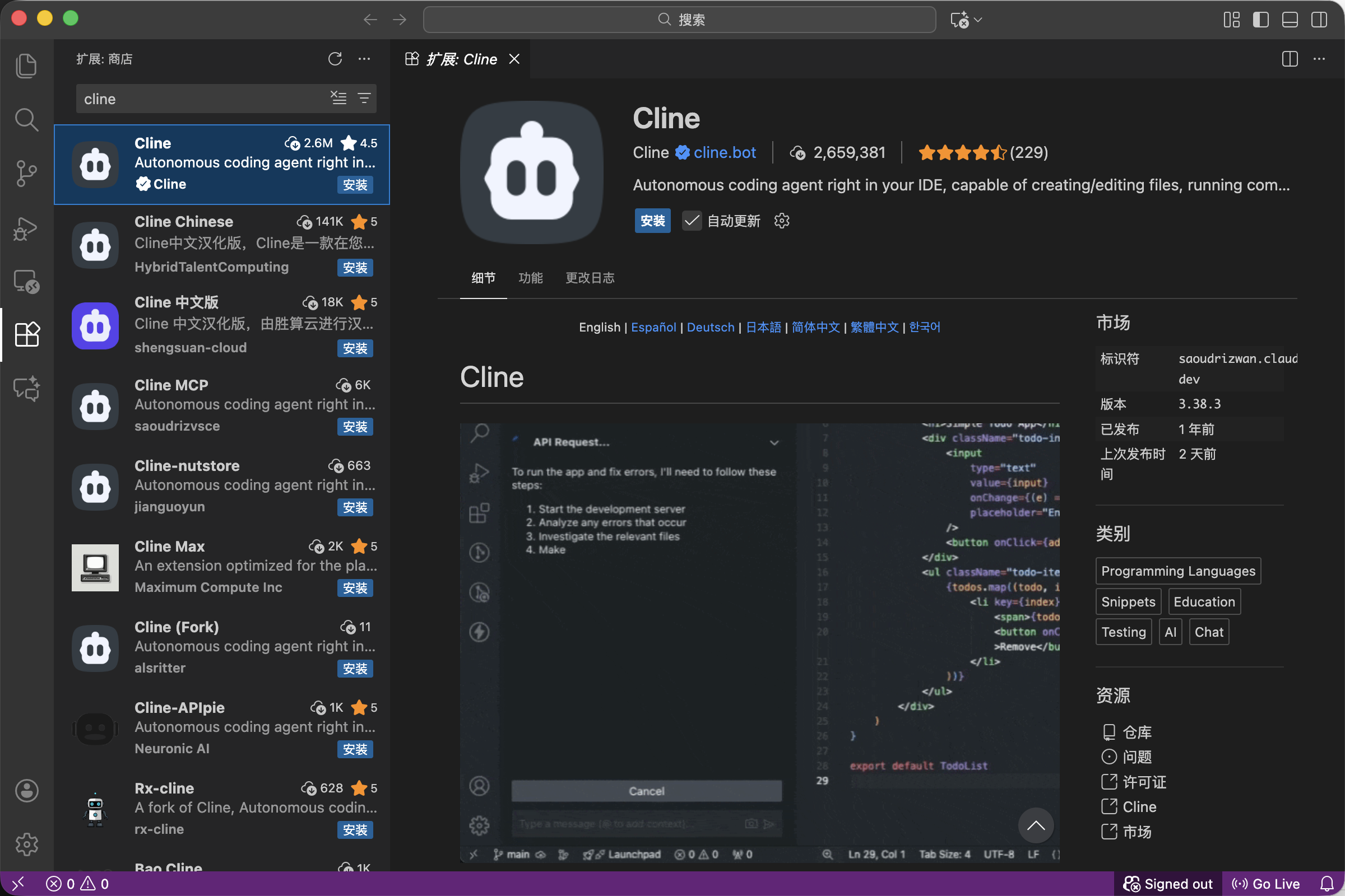 我平时最常用的组合是 VSCode + Cline。Cline 作为目前最强的大模型编程插件之一,对 OpenAI 格式的兼容性极佳。配置过程主打一个"即插即用",全程不超过 30 秒。