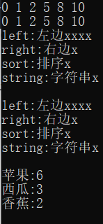 string arr[] = { "苹果", "西瓜", "苹果", "西瓜", "苹果", "苹果", "西瓜", "苹果", "香蕉", "苹果", "香蕉" };