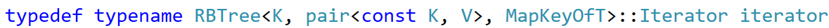 虽然底层都是用红黑树实现的,这里我们看源码,第一个模板参数都是Key,区别就在于第二个模板参数,value对于set是key,对map不是------对于map是一个pair<const Key, T>