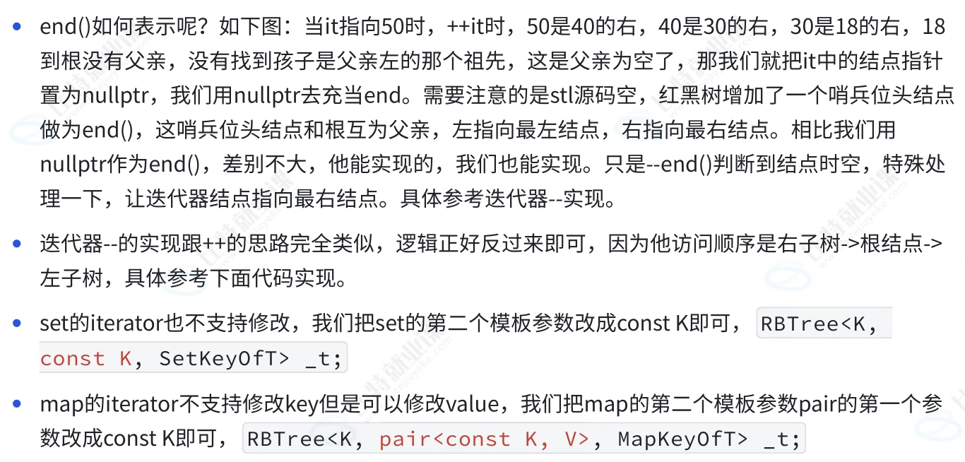 - set实例化rb_tree的时候第二个模板参数给的是Key,map实例化rb_tree时第二个模板参数给的是pair<const key , T>,这样一个红黑树既可以实现Key搜索场景的set,也可以实现Key / value搜索场景的map。
