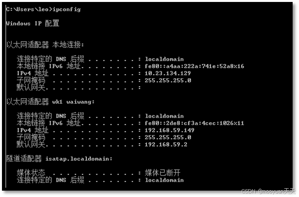 一块网卡使用NAT模式(vmnet8),一块网卡使用自定义的vmnet,我这里选择使用vmnet2,实验前开机并将两块网卡的ip地址由静态配置改为动态DHCP获取,配置完毕后查看ip地址,效果如下所示。