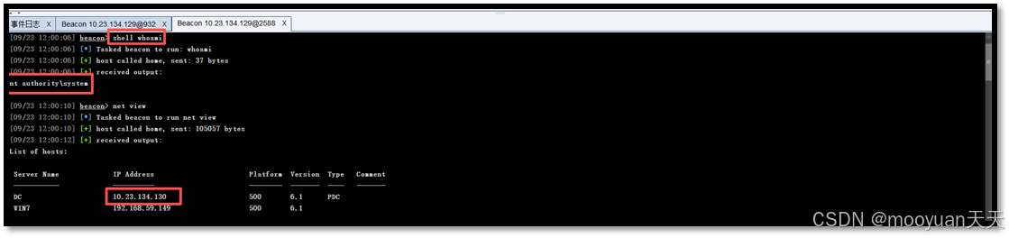 使用net view发现dc目标10.23.134.130,如下图红框所示。