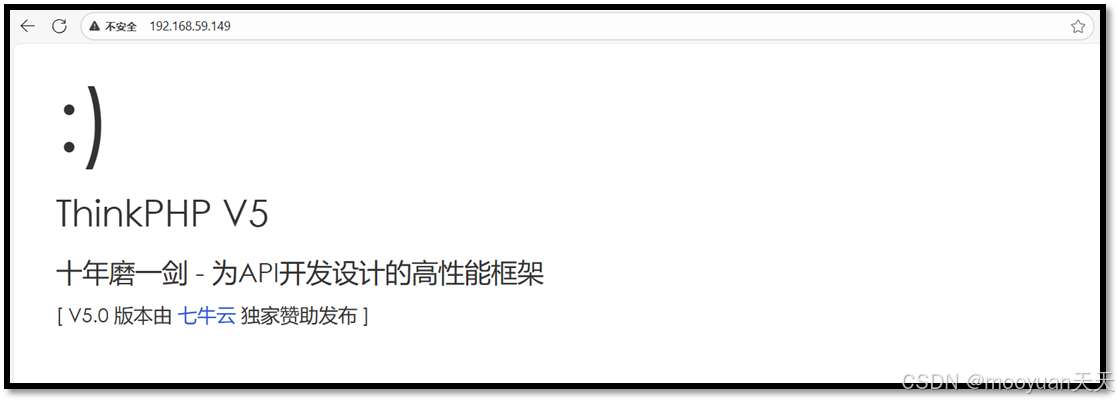 访问靶机192.168.59.149的web服务80端口,使用浏览器打开URL,发现其为thinkphp框架。