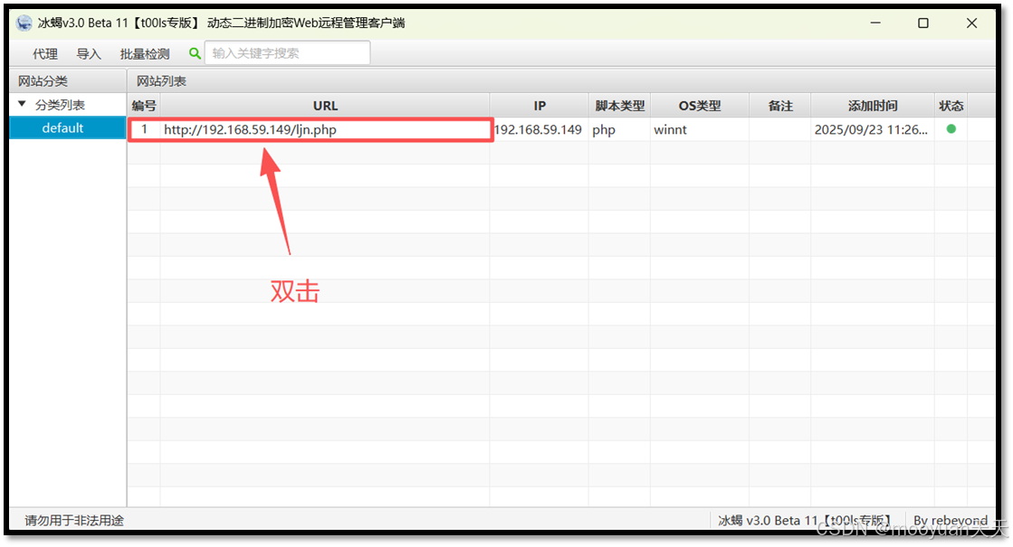 将脚本URL成功添加到冰蝎后效果如下所示。