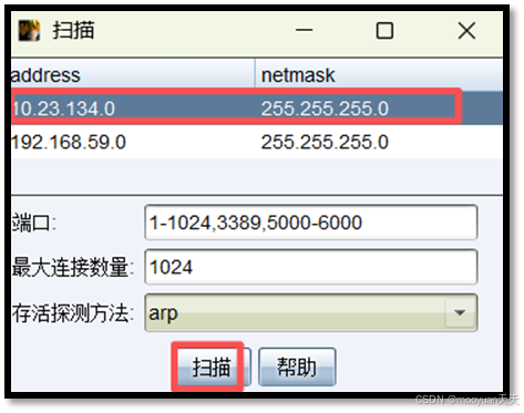在弹出的扫描框中选中10.23.134.0 255.255.255.0网段,具体如下所示。